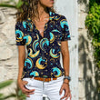 On apprécie pour ce chemisier licorne femme une coupe droite, un col rabattu, des manches courtes, une ouverture boutonnée et deux poches au devant. Avec sa couleur éclatante et ses motifs licornes, elle est idéale à porter avec un bas blanc ou de couleur sobre et unie. Il apportera une touche de fraîcheur et d'éclat à votre look.