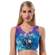 On peut l'appeler, également, un crop top licorne pour le sport. Matière stynthétique et respirante.